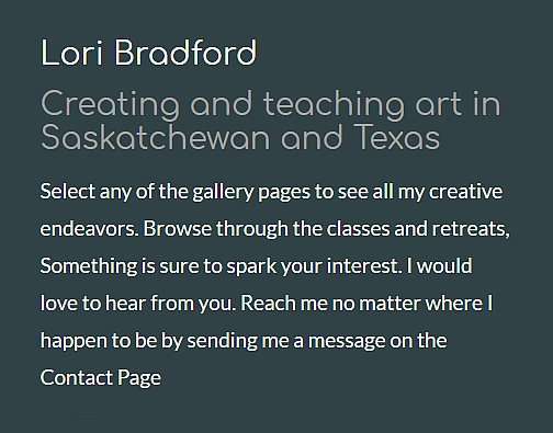 This website will show you a good example of all my past work and more importantly what I'm working on at the moment. I look forward to showing you my art and if you get the chance to come to my workshops, I look forward to sharing my knowledge, home and studio spaces with you as well.