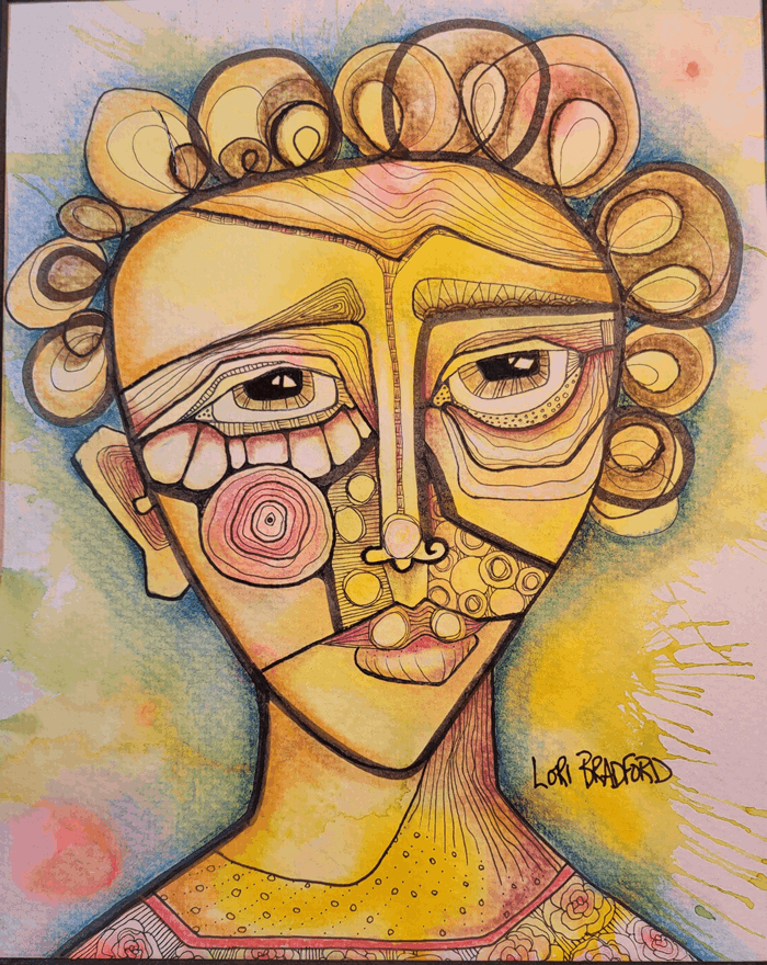 A mesmerizing painting that beckons the viewer into a realm where abstract wonder meets vibrant mystery. The eyes captivate with their expressive depth and hold secrets, inviting contemplation and introspection. Lori's expressive drawing and use of color add unexpected elements.