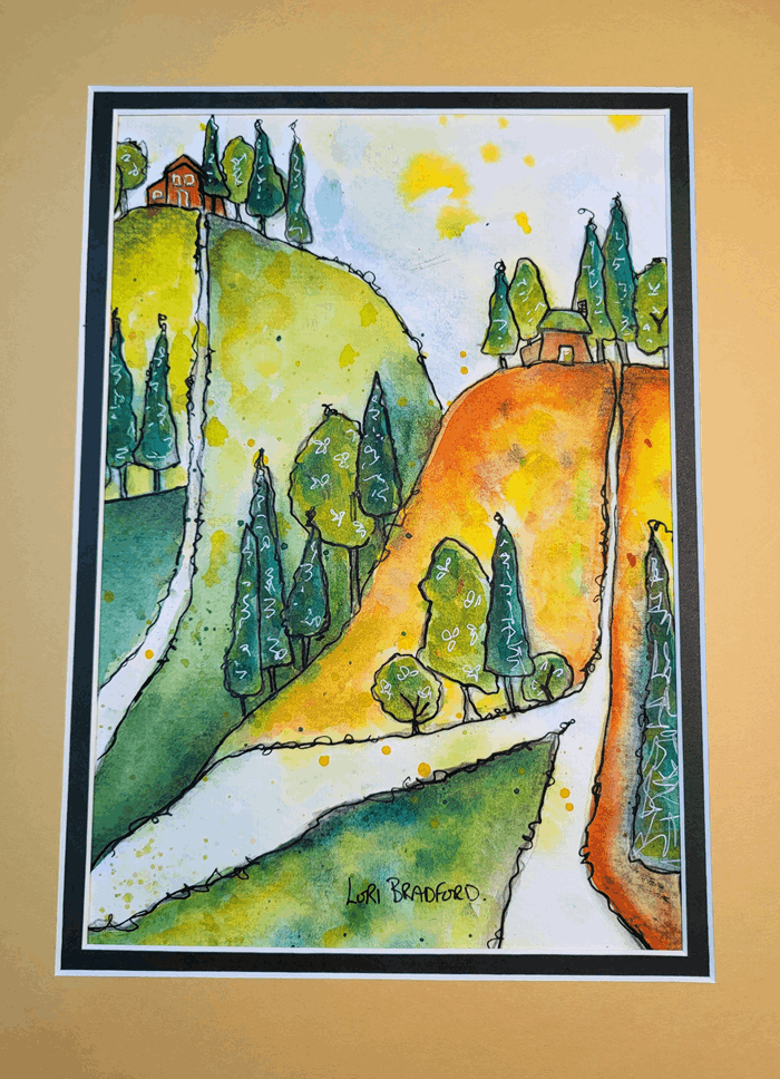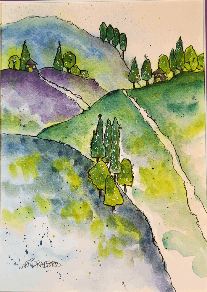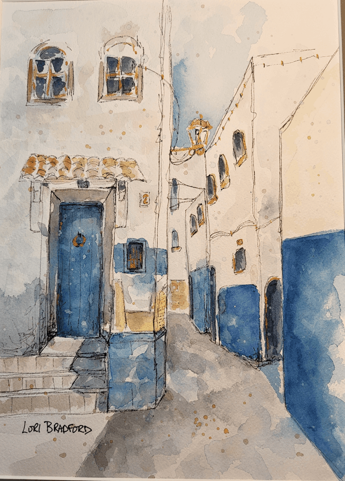 Imagine yourself strolling down this cozy lane while exploring a sun-soaked Mediterranean village. It’s a little slice of vacation you can enjoy every day, right from the comfort of your home. Dive into the serene charm and let the wanderlust wash over you! Thanks to Toni Burt for inspiring this painting.