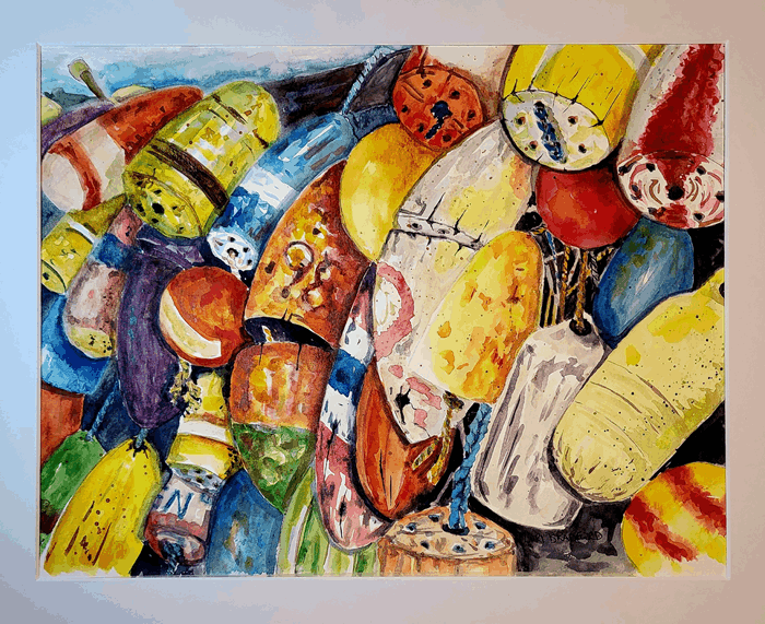 Through the use of hues and shading, the Lori was able to achieve depth and dimension, ensuring each buoy stands out while maintaining a cohesive and harmonious overall effect. The richness in detail—from the intricate patterns on the buoys to the subtle abrasions on their surfaces—imbues the piece with a lifelike quality.